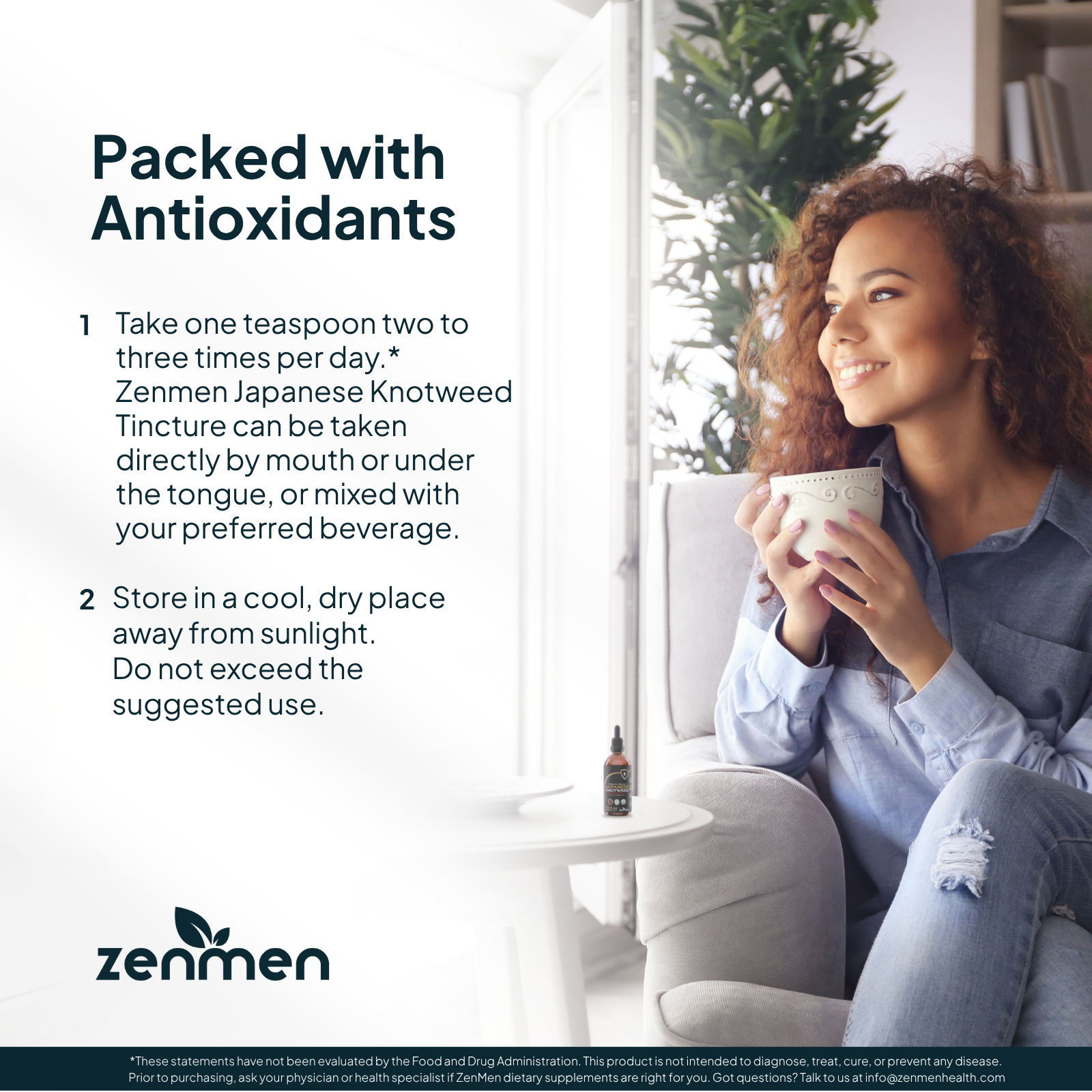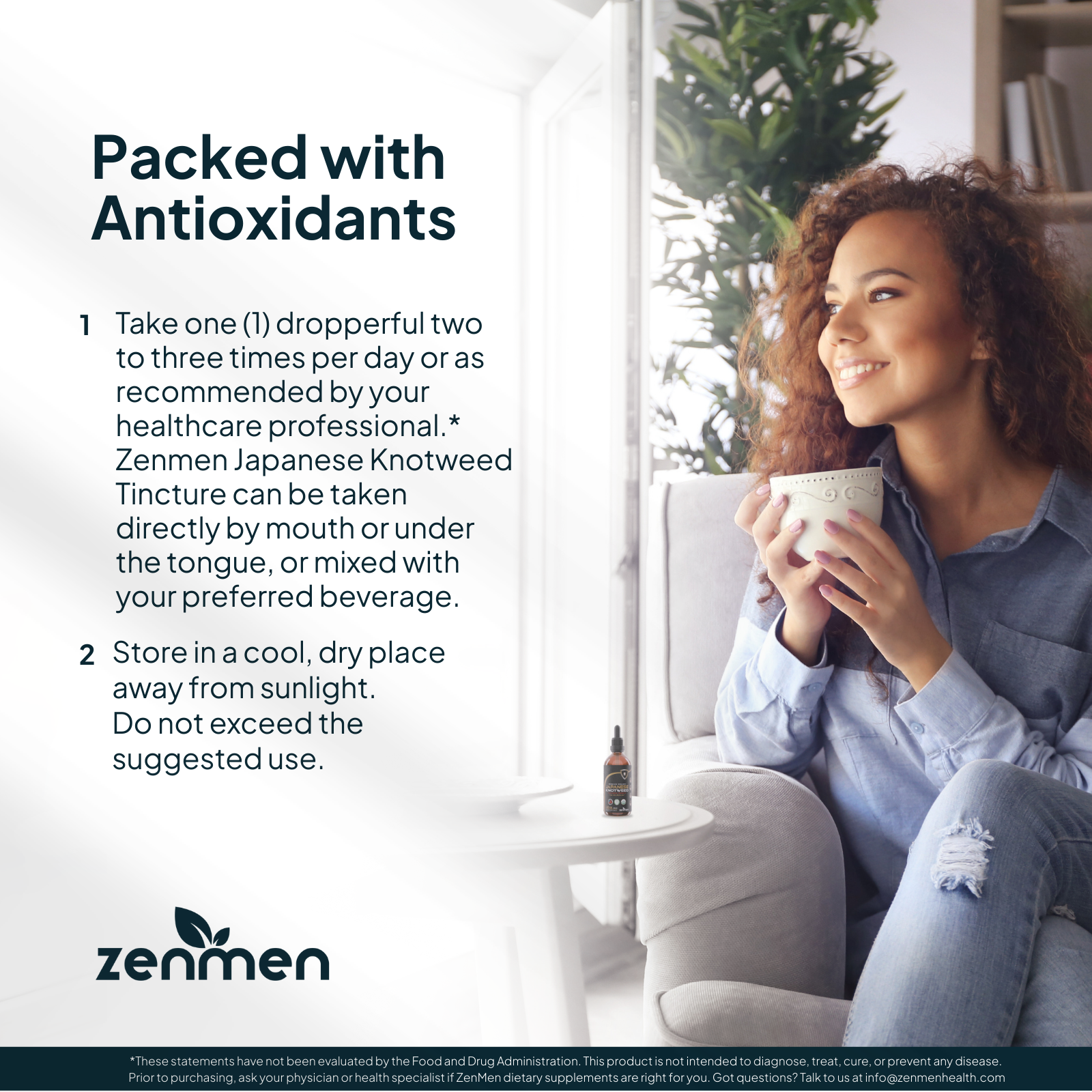 Zenmen Japanese Knotweed Tincture can be taken with or without food. Always check with your health practitioner before taking any supplement.*