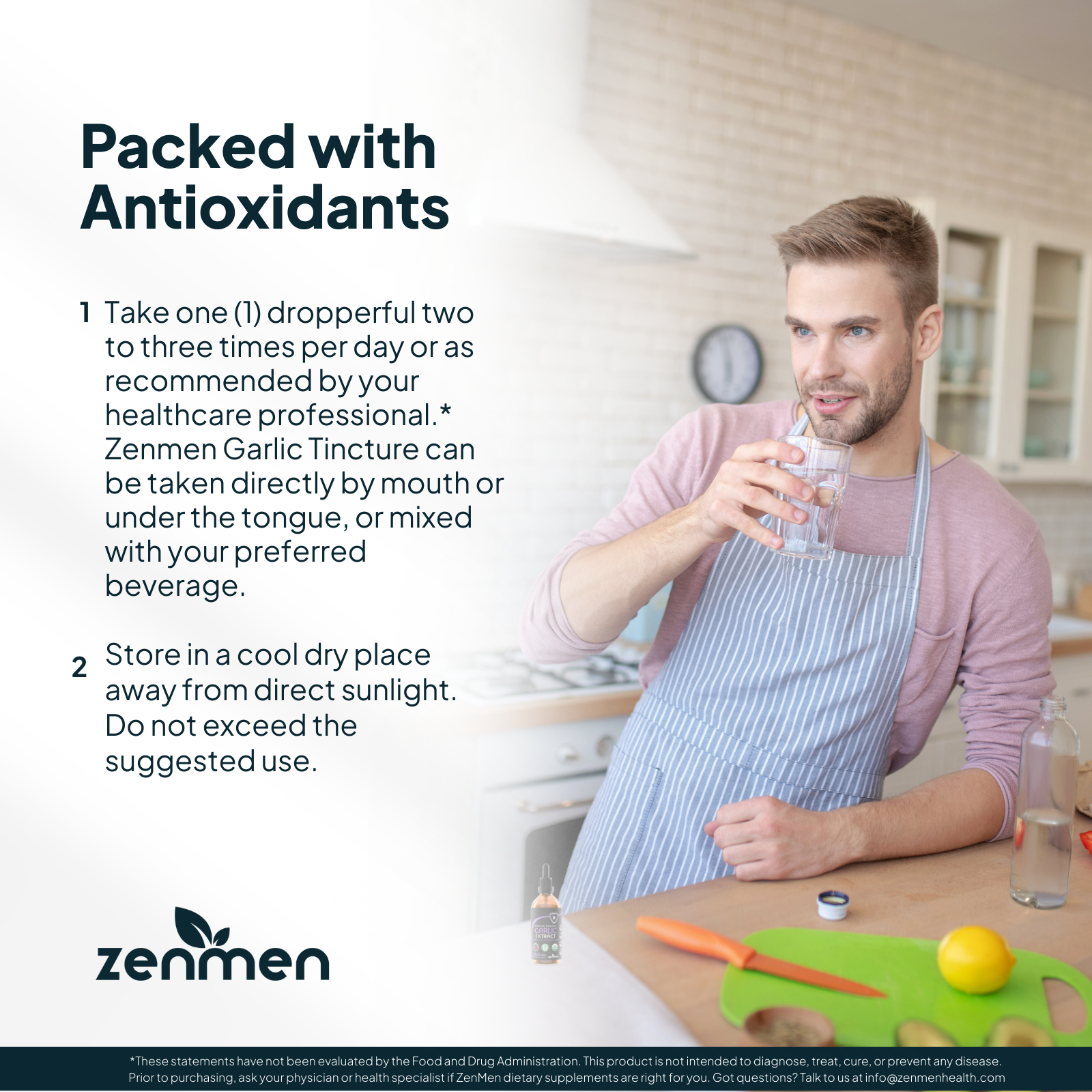 Support your immune health and daily wellness routine with the Zenmen Organic Garlic Cloves Extract Tincture — a highly potent odorless liquid herbal extract formulated to deliver the naturally occurring power of allicin and organosulfur compounds for immune support, antioxidant protection, and relief from occasional joint and nerve discomfort.