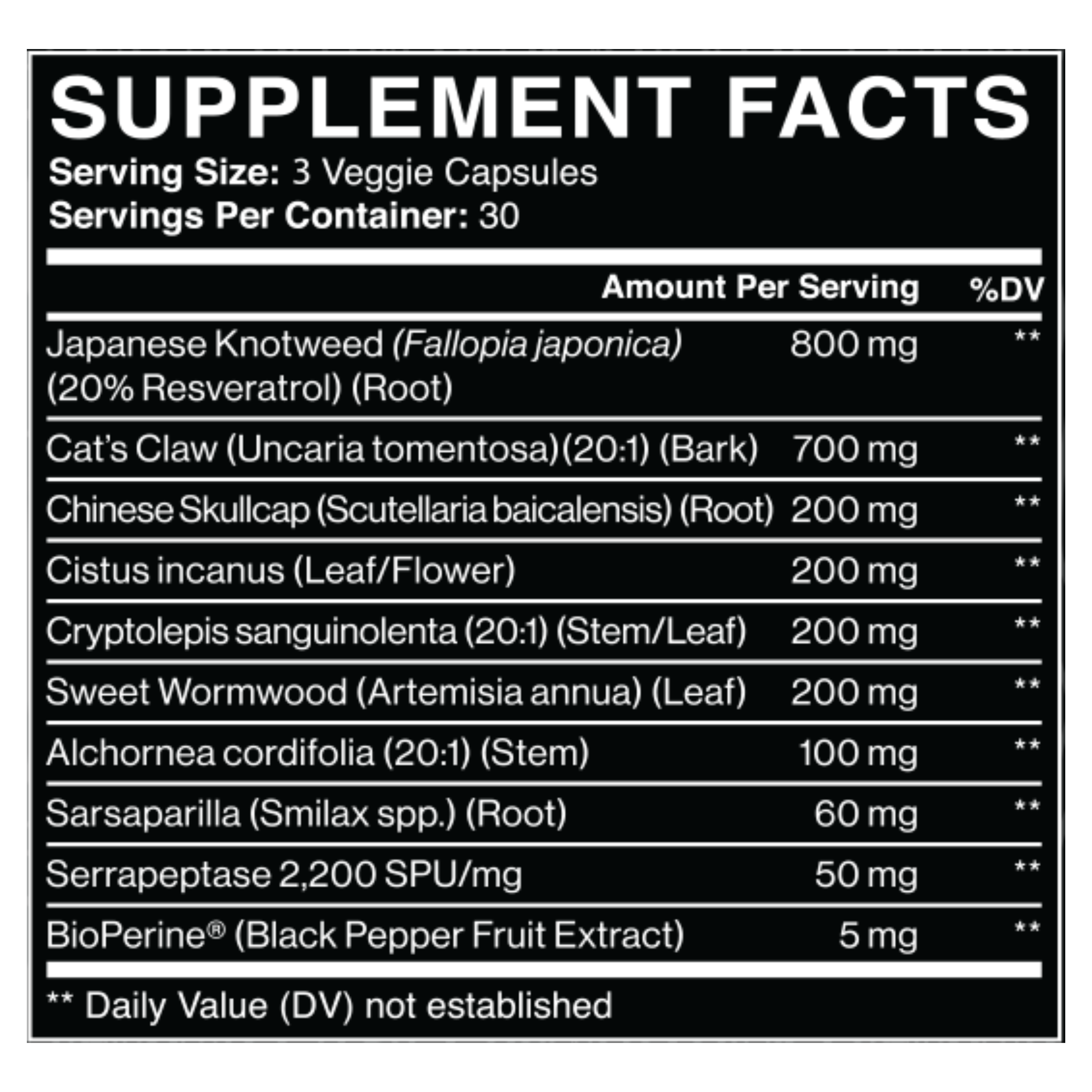 This longer-term protocol (3-6 months) provides comprehensive antimicrobial, immune, and detox support. Some users may experience initial symptom flares as part of the recovery process.